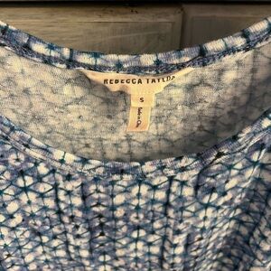 Rebecca Taylor Blue & White Geometric Printed Shibori Linen Wrap Dress