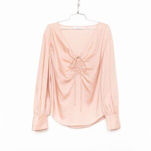 Rebecca Taylor Blush Pink Tencel Drawstring Long Sleeve Blouse - Sz 12
