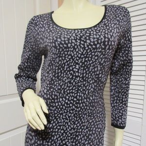 Rebecca Taylor Bodycon Sweater Dress 3/4 Sleeve Animal Print Black Feminine Chic