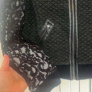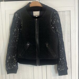 Rebecca Taylor Bomber Lace Leather combination Jacket size 8