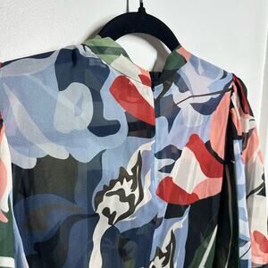 Rebecca Taylor Botanical Garden Mock Neck Blouse Size 2 Black Combo Silk Blend