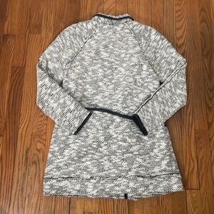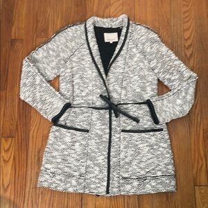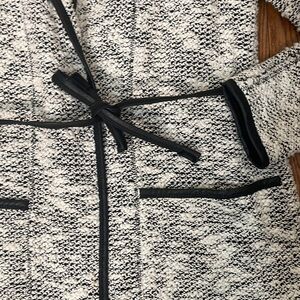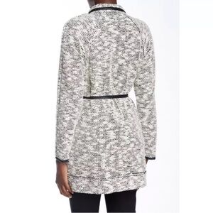 Rebecca Taylor Boucle Tweed Faux Leather Trim Sweater Jacket black white Sz 4