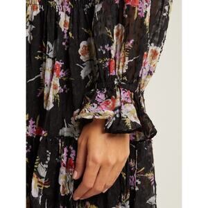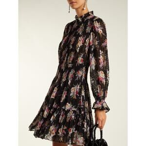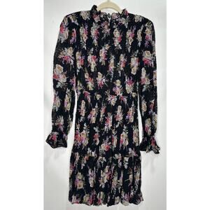Rebecca Taylor Bouquet Silk Floral Smocked Mini Dress in Black | Size Small
