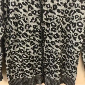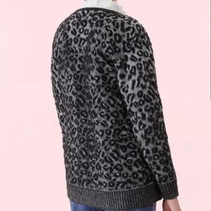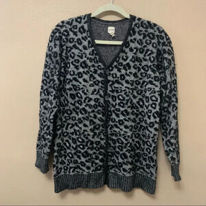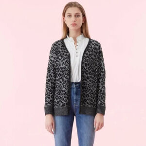 La Vie Rebecca Taylor Jacquard Leopard Print Cardigan Gray V-Neck