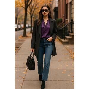 Tailored blazer + flared denim for dinner in the city, pleated skirt + ankle boots for a fall edit look, or wide trousers + loafers for quiet-luxury office wear.