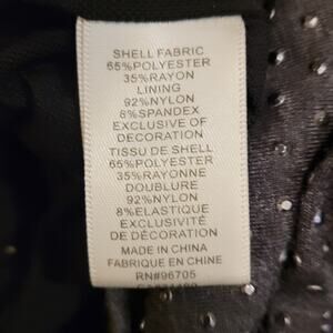 Fabric: Shell polyester rayon blend; lining nylon spandex