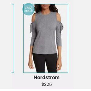 Rebecca Taylor Cold Shoulder 3/4 Sleeve Ribbed Jersey Top Knit Sweater Blouse