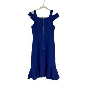Rebecca Taylor Cold Shoulder Peplum Hem Midi Dress Blue Women's Size 4 Sleeveless
