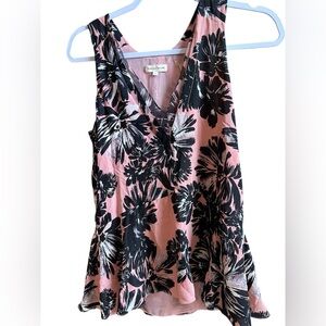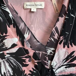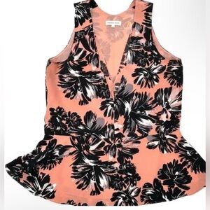 Excellent Condition! Rebecca Taylor Coral Pink and Black V-neck Silk Tank Size 4