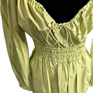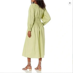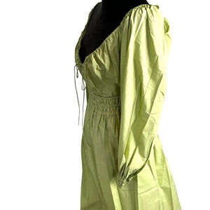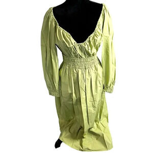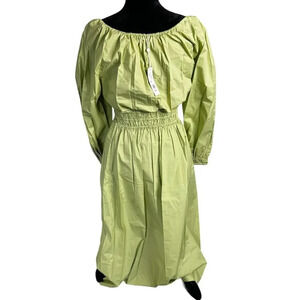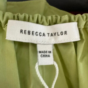 Rebecca Taylor Midi Dress Green Poplin Smocked Waist Puff Sleeve