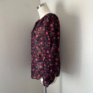 Rebecca Taylor Crash Velvet Floral Print Silk Blouse Sheer Lightweight Sz 10