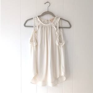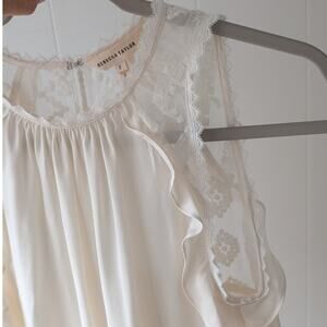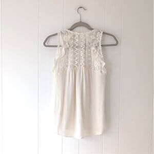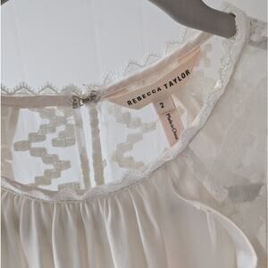 Rebecca Taylor Cream Embroidered Blouse 100% Silk Sleeveless Lace Top, size 2