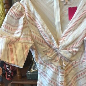 This elegant cream sundress by Rebecca Taylor features charming puff sleeves and a sweetheart neckline, perfect for a wedding guest or cocktail occasion. The midi length and light, airy fabric make it an ideal choice for warm weather events, offering both style and comfort.