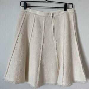 Rebecca Taylor Cream Tweed Fringe Skirt Size 10- Old Money, Preppy, Winter