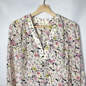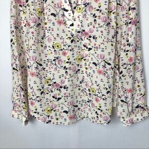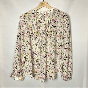 Rebecca Taylor Cream White Long Sleeve V-Neck Garden Tapestry Floral Top