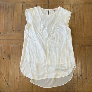 Rebecca Taylor Cream White Sleeveless Blouse Silk Top Size 2 Mesh Sheer Preppy