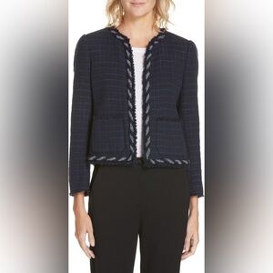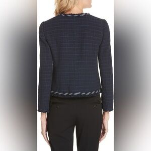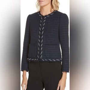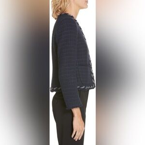 Rebecca Taylor Crochet Tweed Navy Blue Cotton Blend Blazer Jacket EUC Size 2