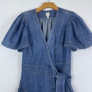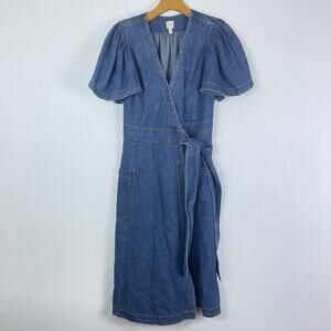Rebecca Taylor Denim Wrap Midi Dress Puff Sleeve size XS