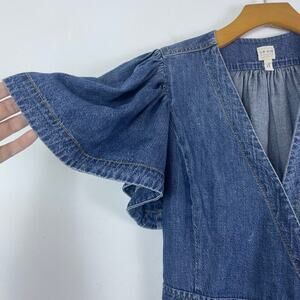 La Vie Rebecca Taylor drapey denim wrap dress puff shoulders size XS