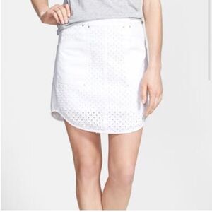 Rebecca Taylor Distressed Punched Denim White Mini Skirt Size 4