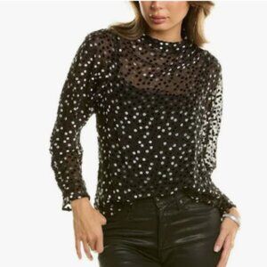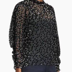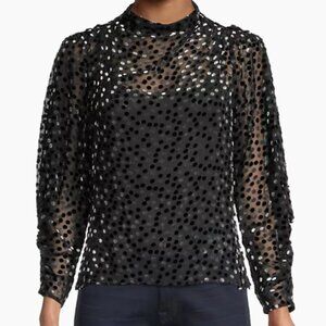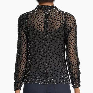 A gorgeous blouse defined by a velvet fabrication and sheer dotted design.