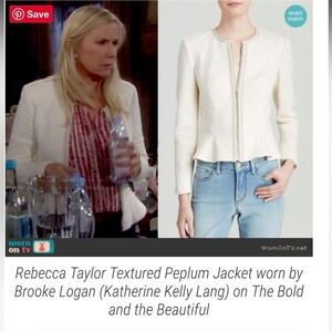 Rebecca Taylor Textured Peplum Jacket worn by Brooke Logan (Katherine Kelly Lang) on The Bold and the Beautiful.