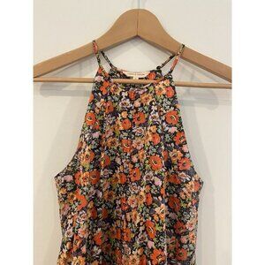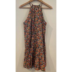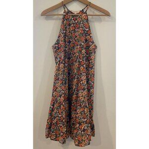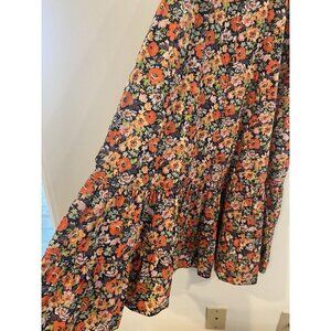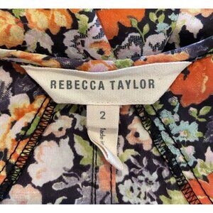 Rebecca Taylor Dress A Line Tiered Sleeveless Navy Blue Orange Purple Floral 2