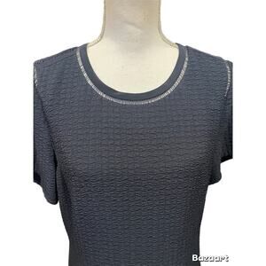 The Rebecca Taylor navy blue dress in size 12 is a stylish option for various occasions such as travel, weddings, or parties. This knee-length dress features a zip-up back and ruffled accents, adding a touch of flair. Made from a blend of polyester and spandex, the dress is lined for added comfort and quality. With a solid pattern and a round neckline, this midi-style dress is perfect for the seasons of summer, fall, and spring. Ideal for women looking for a versatile and chic addition to their wardrobe.