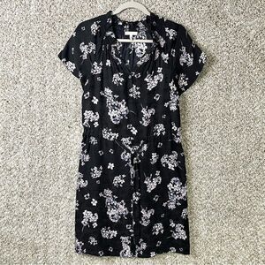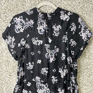 Rebecca Taylor Dress Womens 0 Black & Purple Floral Print 100% Silk Short Sleeve