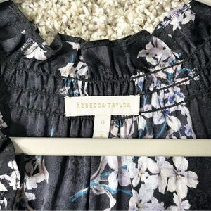 Excellent used Condition Women’s Rebecca Taylor Black and Purple Floral Print 100% Silk Short Sleeve Dress in Size 0