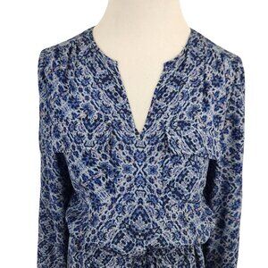 Rebecca Taylor Dress Women's 0 Silk V Neck Long Sleeve Mini Blue Floral Pockets