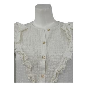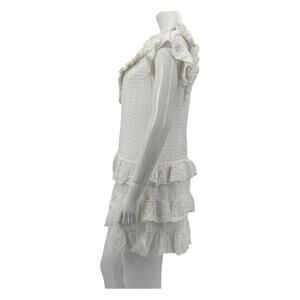 La Vie Rebecca Taylor Womens Drapey Check Ruffle Mini Dress XS Milk Cream Pullover Smocked Bib Tiered Cotton Blend Above Knee Length Short Flutter Sleeves Style 318123D853 Cottagecore Milkmaid Boho Dainty Victorian Feminine Romantic Peasant