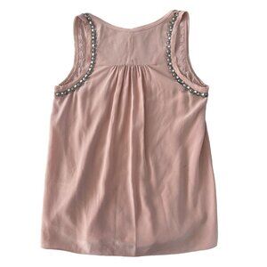 Rebecca Taylor Embellished 100% Silk Tank Woodrose 4 Light Pink $275 Beaded Chic