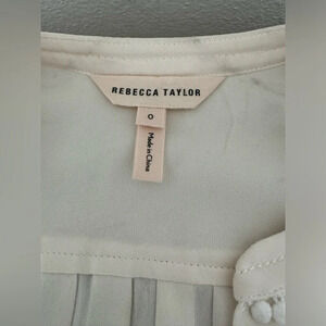Rebecca Taylor Embroidered Chevron Silk Top Lace Up Neck Long Sleeve Sz 0 *FLAW