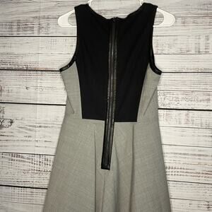 Rebecca Taylor Fit Flare Dress Virgin Wool Genuine Lamb Leather 6 Knee Length