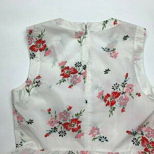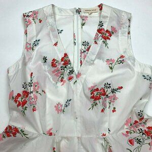 Rebecca Taylor Floral Blouse Top V Neck Sleeveless Ruffle Cotton Satin Women 0