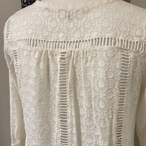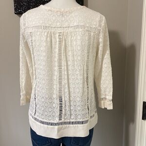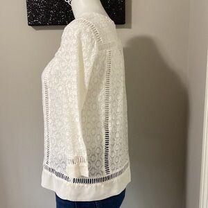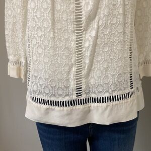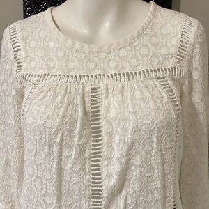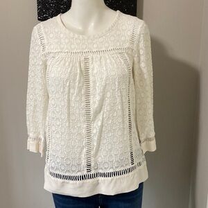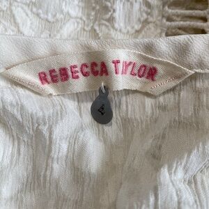 Rebecca Taylor Geo Clip Brocade Top Scoop Neck Shirt Blouse White Sz 4