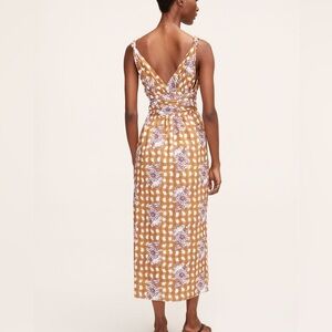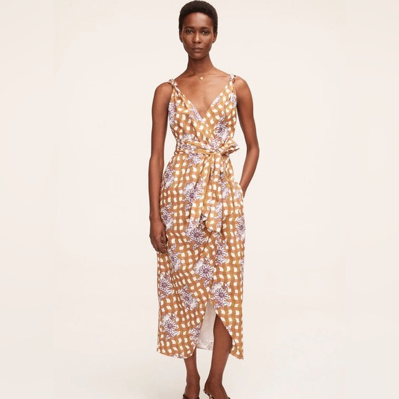 Rebecca Taylor Gingham Whisper Midi Dress Size 10 Brown Purple Wrap Tie