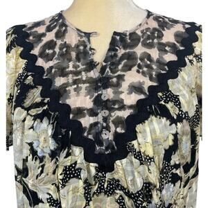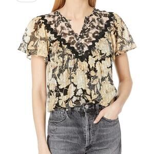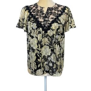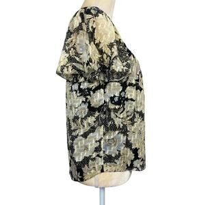 Rebecca Taylor Gold Leaf Top Black Combination Floral Size 0 Feminine Romantic