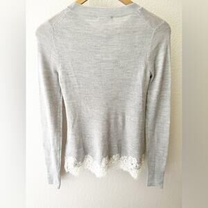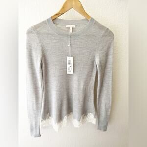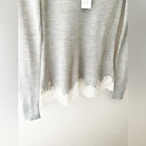Rebecca Taylor Gray White Lace Combo Pullover Alpaca Wool Crew Sweater Size S