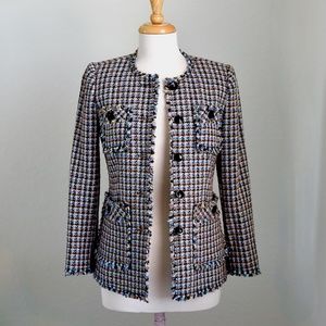 Rebecca Taylor HOUNDSTOOTH TWEED Blue/Black Tweed Blazer/Jacket NWT Sz 0