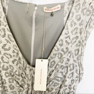 Rebecca Taylor Heather Grey Leopard Print Ruched T-Dress