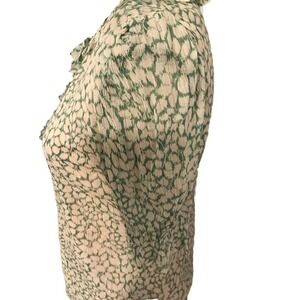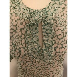 Rebecca Taylor Ikat Lurex Metallic Green/White Leaf Ruffle Blouse - Size 2