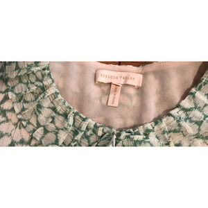 Rebecca Taylor Ikat Lurex Top Blouse Metallic Green/White Leaf Ruffle