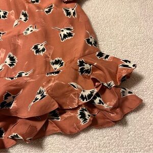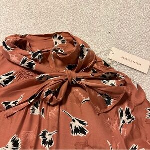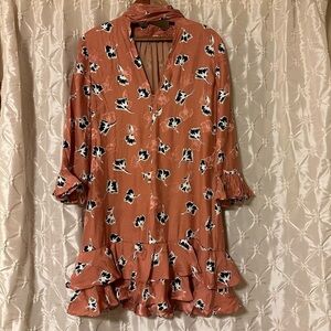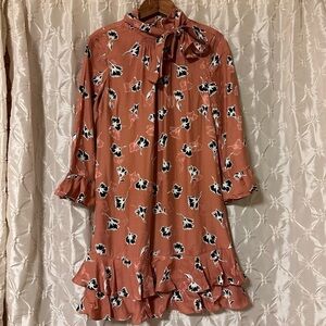 Rebecca Taylor Ikat Paintbrush Silk Ruffle Dress Pink Black Floral Cutout