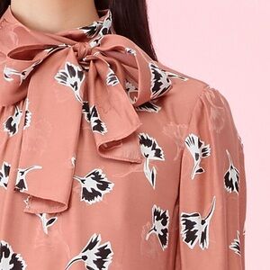 Playful ruffles and a tied neckline lend easy movement to this silk jacquard shift dress. Blooming with bold, graphic florals over warm pink hues, this easy silhouette adds charm to your wardrobe.