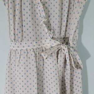Rebecca Taylor Ikat Sleeveless Polkadot Wrap Dress Sz 2 White/Blue Ruffle