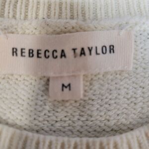 Rebecca Taylor Ivory Crewneck Sweater Gray Leopard Print Detail Size Medium