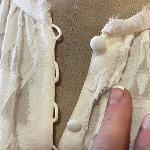 Covered buttons. NOTE: One button is missing at the neck, please see photo.