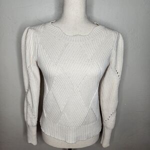 Rebecca Taylor Ivory Wool Blend Puff Sleeve French Inspired Sweater Size Small